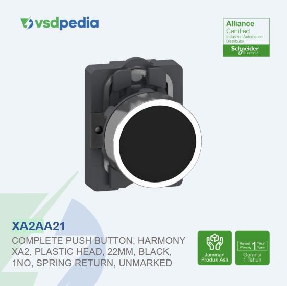 Complete push button, Easy Harmony XA2, plastic head, 22mm, black, 1NO, spring return, unmarked